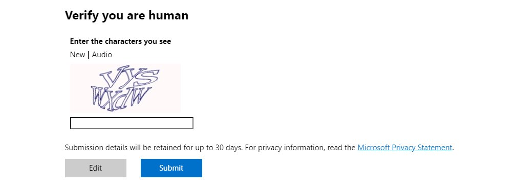Finding code execution in the kernel in a third-party that is the driver is made by a giant company that has no security awareness whatsoever, @MSRC sends me here: …https://securityintelligencecenter-dev-westus.azurewebsites.net/en-us/wdsi/driversubmission … How can I bypass this bloody captcha? Or should I just drop 4 zero-days?pic.twitter.com/9hcsflZIGL
