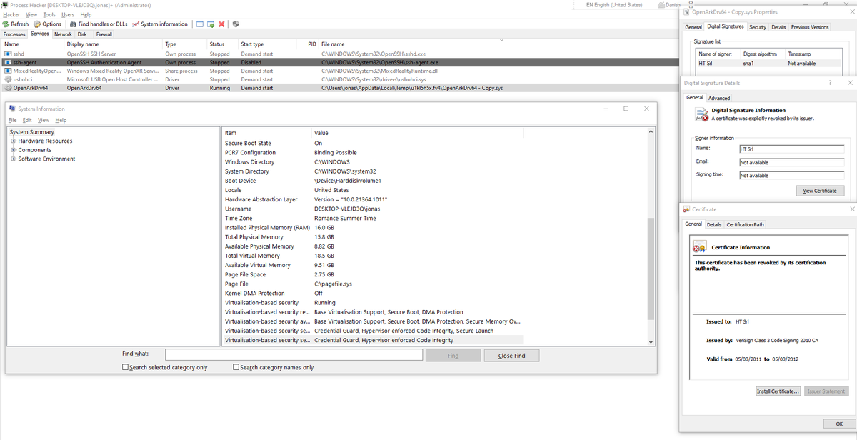 Here I load a driver signed with the expired and revoked certificate from the Hacking Team hack.pic.twitter.com/waqOL2uyVY