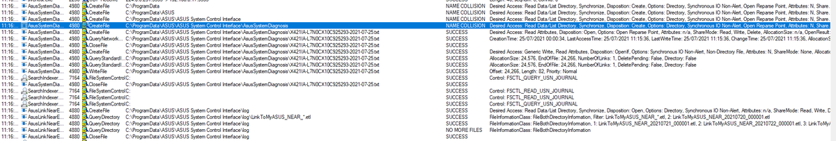 First a fuck you to asus for abusing the pnp driver system to install crapware! Lets go: Huh? NAME COLLISION, this would have created a folder if not already there.. and it is programdata so default ACL let users writepic.twitter.com/6NdJIkJoak
