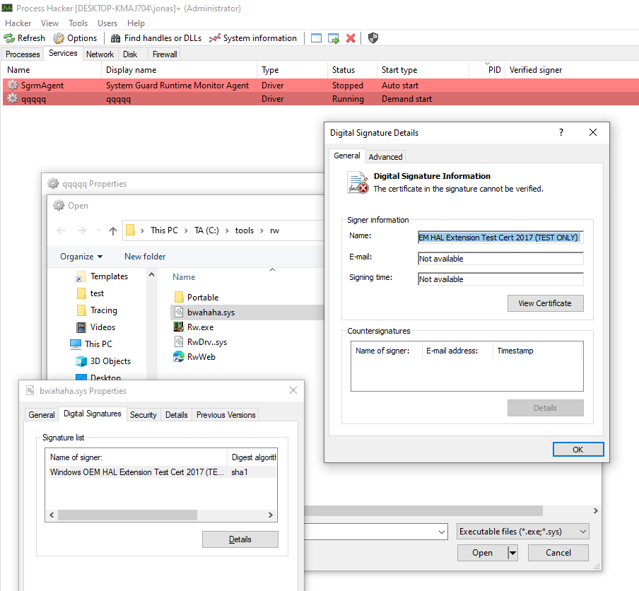 hah- this did not take long, I can now attach kernel debugger with every possible security feature enabled. just a elegant jump around all the bs buzzword security feature nobody wants anyway. I can also load any driver and tpm 2.0 do not have a clue! DIDNT EVEN NEED BOOTKIT!!!pic.twitter.com/YDsSlnJE05