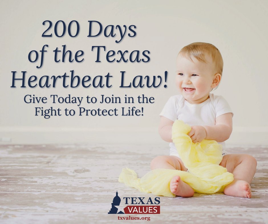 Today marks 200 days of the Texas Heartbeat Law being in effect and saving LIVES! Join us in the fight to protect life by giving today: http://txvalues.org/donate/