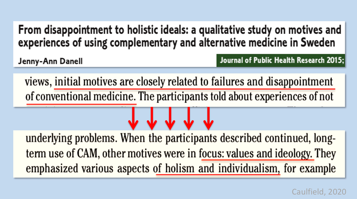 From disappointment to holistic ideals: https://www.ncbi.nlm.nih.gov/pmc/articles/PMC4568425/ … cc @SITP @oxfordsitp @DrJenGunter @gorskon Motivations for using alternative medicine evolve. Can start with frustration with conventional med or search for efficacy. But once there, embrace of ideology...pic.twitter.com/KG6SKMPQuK