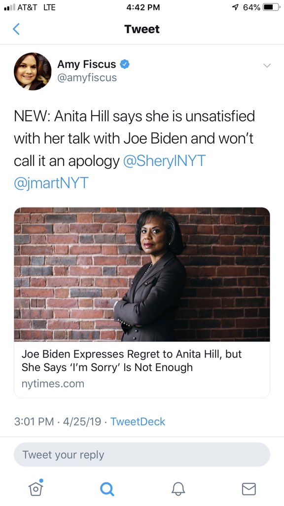 That's a tough sell from a guy who supported extending segregation in the 70's & harassed Anita Hill. Who he has still never reached out to.