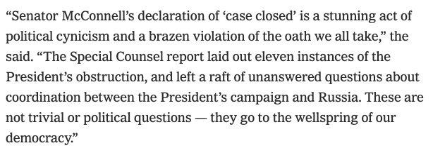 Mitch McConnell on Trump and Mueller: Case closed. @SenSchumer and @SpeakerPelosi respond with unsparing anger. https://www.nytimes.com/2019/05/07/us/politics/mitch-mcconnell-mueller.html …pic.twitter.com/QtuCOEDJ9K