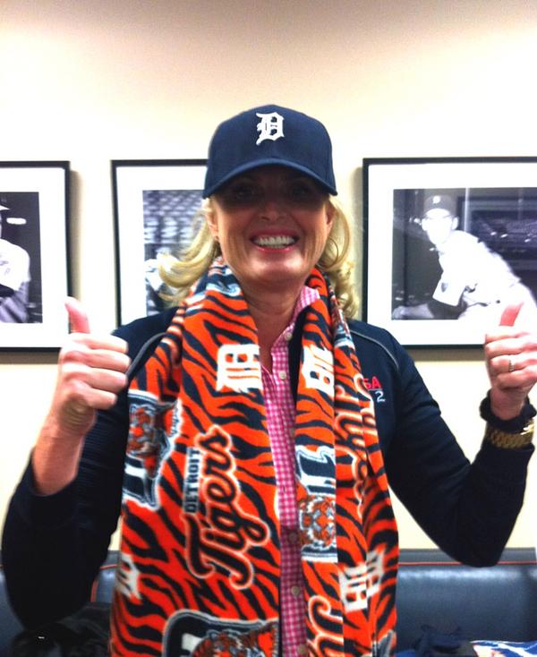 !! RT @AnnDRomney Here in Detroit. So excited to see the Detroit Tigers play in the World Series!pic.twitter.com/ficwk828