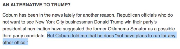 Outside Oklahoma and a half-mile radius of the U.S. Capitol, how many voters have heard of Tom @TomCoburn?https://twitter.com/alexburnsNYT/status/712433155177893888 …