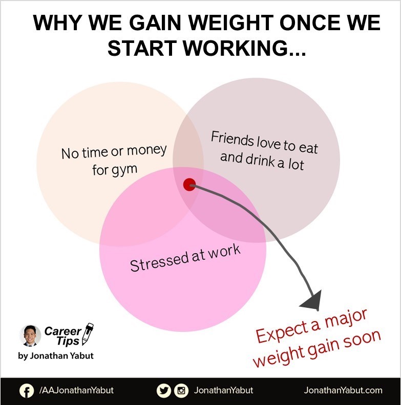 For many of us, comparing our university photos vs. our corporate days is like seeing a reverse weight loss progression. At least we all agree as to why we gain weight when we start working ;) When more stress and more disposable income collide, discipline is the antidote.pic.twitter.com/lcqxCoXFoW