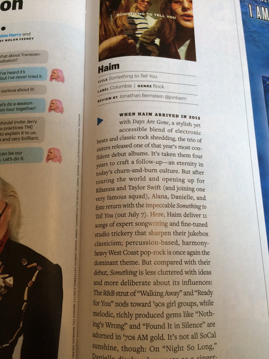 @EW is a review of the new Haim album, which sounds a lot like their debut, which doesn't bother me one bit!pic.twitter.com/nGi3rtniPz