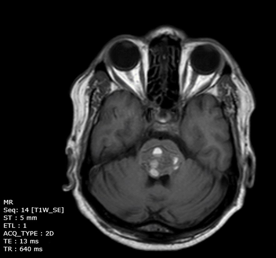 A 62-year-old man presents with a history of progressive gait and limb ataxia and scanning dysarthria with mild cogwheeling. A brain MRI scan was performed. Can you solve this
