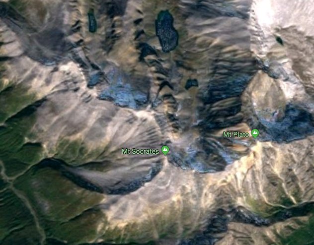 You might enjoy this. There is a Peterson Canyon (Or is it gorge?) situated near Toad River, which has two mountains named after Socrates and Plato. Just off in BC to the left of Fort Nelson which is north of Prophet River. Big picture has both areas in it.pic.twitter.com/kwUZsB35Gb