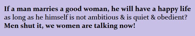 Oh but you know, all housewives are oppressed and are suffering under the brutal tyranny of men