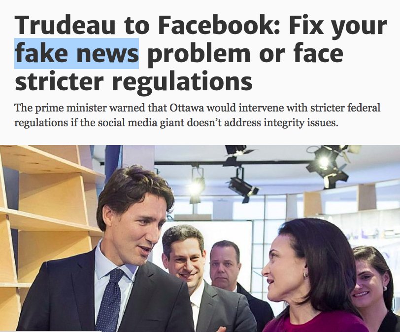Story should be, Canadian PM asks Facebook, who recently helped Russia influence the 2016 presidential election, to help censor media. That's a Story, better than complaining at someone for disagreeing with your "opinion"