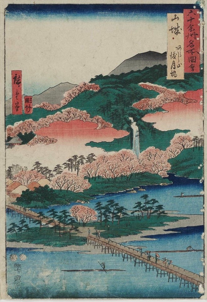 Yamashiro Province, The Togetsu Bridge in Arashiyama, from Famous Views of the Sixty-odd Provinces, by Utagawa Hiroshige (1797-1858) https://wp.me/p7LXSI-pJ