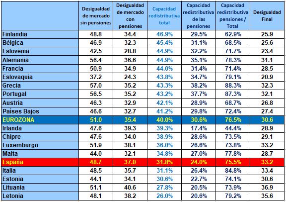 España es el 5º país de la Eurozona que menos reduce la desigualdad mediante transferencias sociales. 3/4 partes de esa reducción se debe únicamente a las pensiones. Es urgente desarrollar el resto de prestaciones contra la pobreza: por hijo/a, renta garantizada, dependencia etcpic.twitter.com/ONEqkZTZQ9