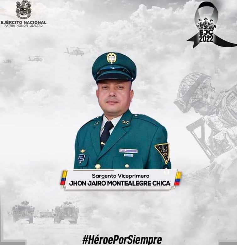 Rechazamos el asesinato del Sargento Viceprimero Jhon Jairo Montealegre Chica, quien en la vía de salida del casco urbano de Tame fue atacado por sicarios y perdió la vida, defendiendo los colombianos. Expresamos nuestra solidaridad a sus familiares.