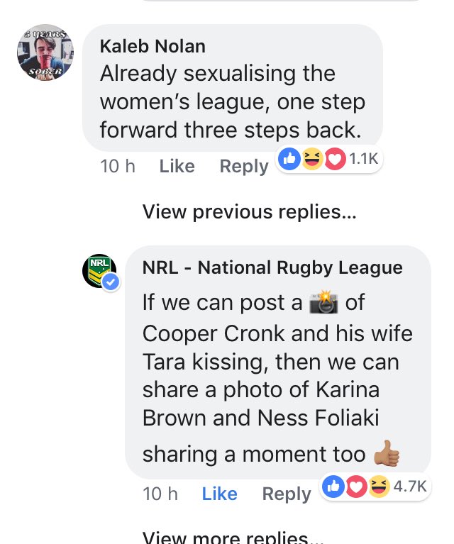 @NRL owning the nuffie comments after the Women’s State Of Origin Post is social media at its absolute best