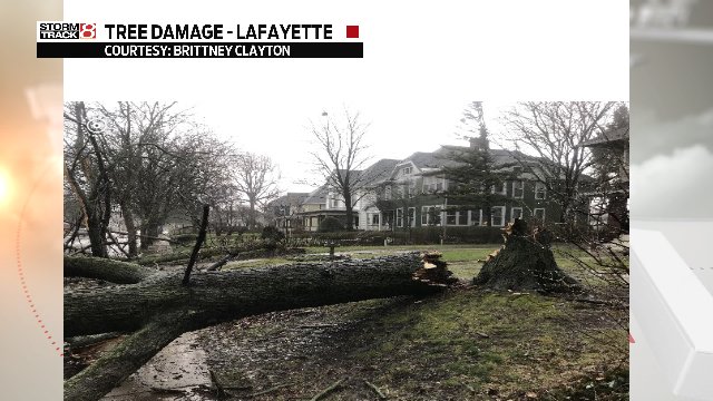 Photos of significant tree damage in downtown Lafayette (Tippecanoe Co.) where a tornado warning was issued and a funnel cloud was spotted earlier.