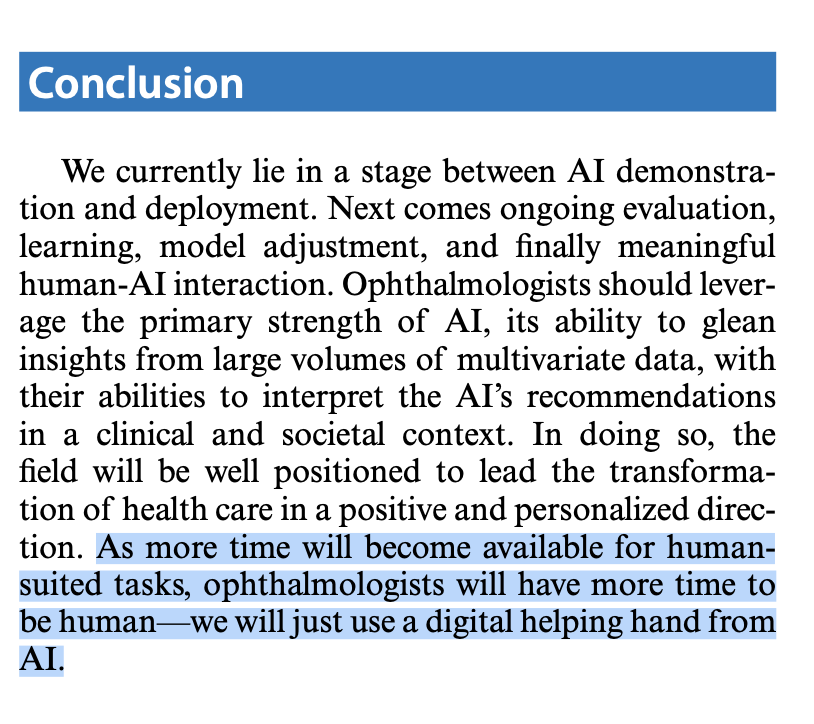 #AI replace ophthalmologists? No. https://tvst.arvojournals.org/article.aspx?articleid=2760332 … Wisdom from@KonBalaskas@pearsekeane@MFT_Research@Moorfields et al Adds to this: "Machines will not replace physicians, but physicians using AI will soon replace those not using it." https://www.thelancet.com/journals/lancet/article/PIIS0140-6736(19)32626-1/fulltext?rss=yes&fbclid=IwAR0NjNF28AbOhwLO240m5WN89jlmsipVYMOzV-83Qaqs0JafUmlWl2HPOBA …pic.twitter.com/lBsjrZvTko