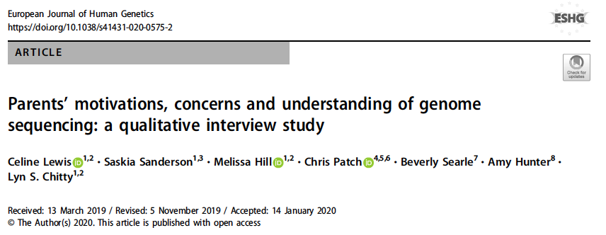 NEW! We conducted qualitative interviews with 20 parents participating in the 100,000 Genomes Project to find out about their motivations, concerns & understanding of genome sequencing. You can read the open-access paper here: https://www.nature.com/articles/s41431-020-0575-2 …