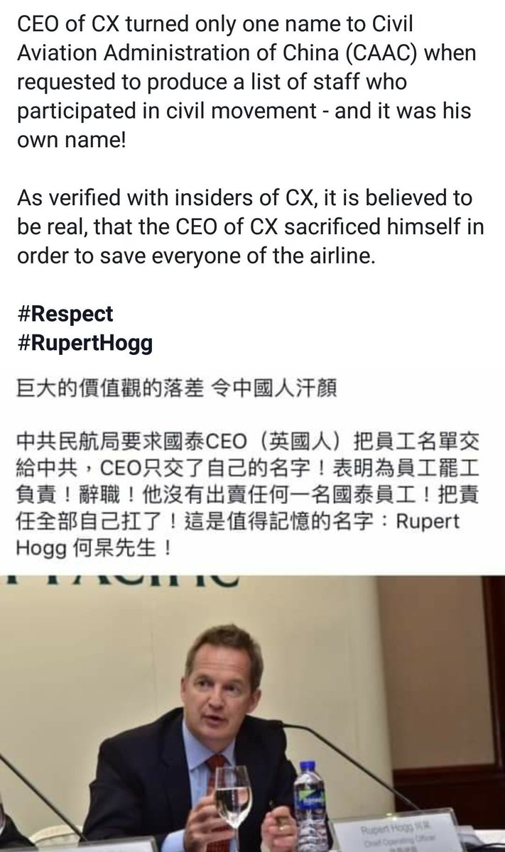 https://twitter.com/hker00033168/status/1162821538858405888?s=21 … Rupert Hogg refused to submit names to China and instead only put his name and resigned to protect his employees. A noble act- we need more CEOs like him.