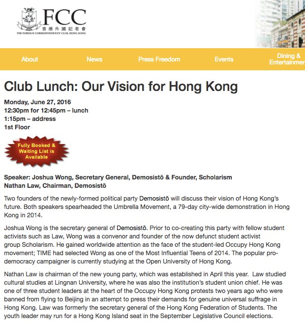Two founders of the newly-formed political party Demosistō will discuss their vision of Hong Kong’s future @fcchkpic.twitter.com/H4i27bJpLa