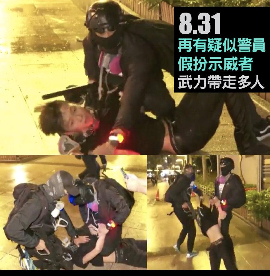 Notorious undercover cops disguised as protesters with black t-shirt and protective mask. They fired at leaving protestors, arrested them and forcefully dragged them. Refusing to reveal identity, they were called as ''colleagues'' by plain-cloth officers. Credit to RTHK Part1pic.twitter.com/M3eDaJUUb7