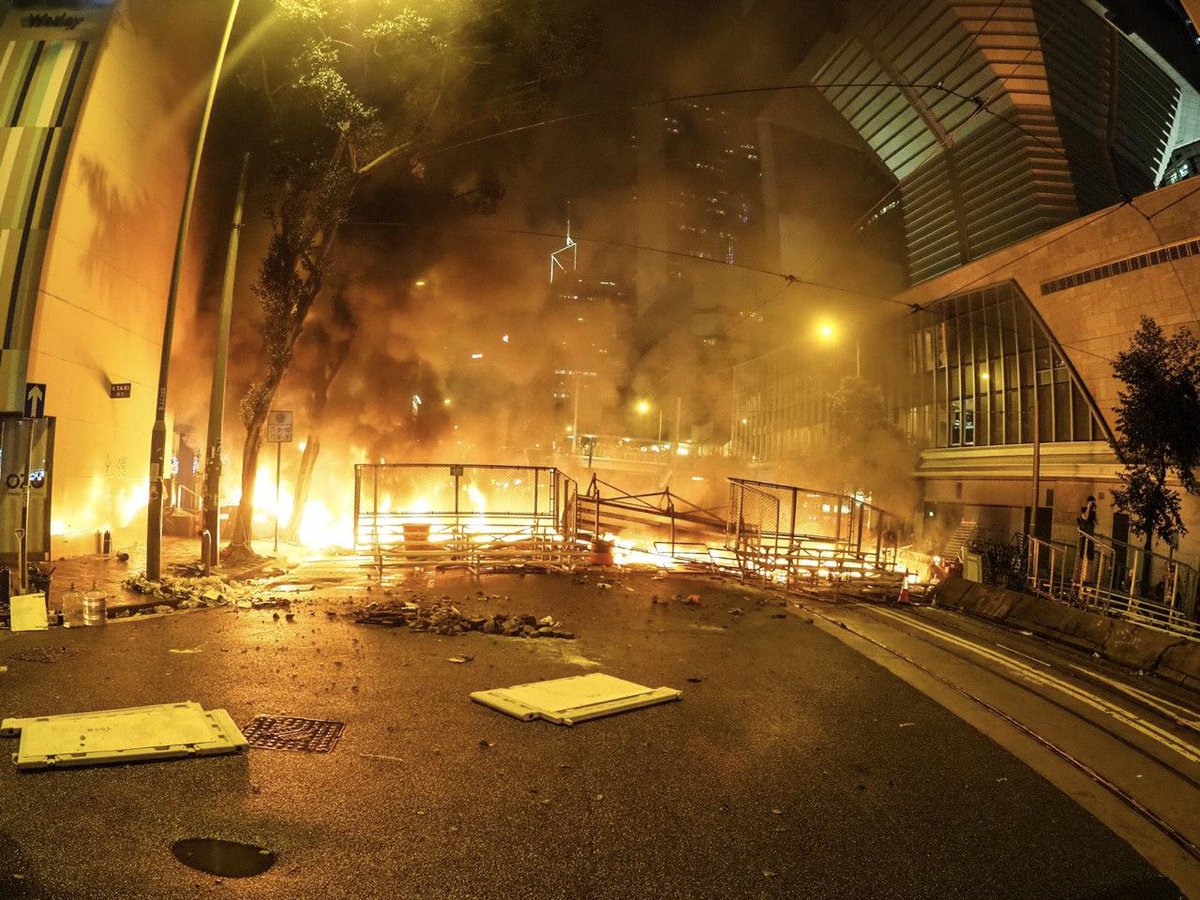 #HKpolice fired tear gas on the rooftop of Chief Executive's Office, such tactic was criticised by experts for canisters may cause serious injury. In response to this, protesters threw the canisters into the HQ of Chinese army.#antiELAB#HongKongProtestspic.twitter.com/HBPQNfbrcx