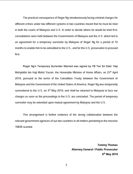 Roger Ng, the former Goldman Sachs banker implicated in the multibillion-dollar 1MDB scandal, was extradited to the US on May 3rd in order to face criminal charges for violating the FCPA and money launderinghttps://twitter.com/AGCPutrajaya/status/1125337172716834816 …