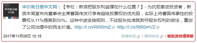 One down for corporate democracy. But do you think any of the institutional investors like BlackRock are going to complain about it?https://twitter.com/jackycwong/status/928805269689085952 …