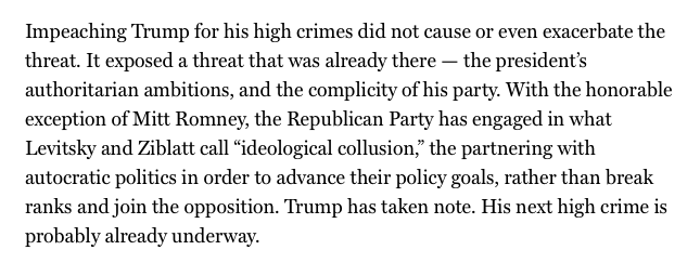 "The Republican impeachment defense is an almost-literal reprise of the arguments in How Democracies Die, but in reverse."https://twitter.com/BrendanNyhan/status/1225175139802927105 …