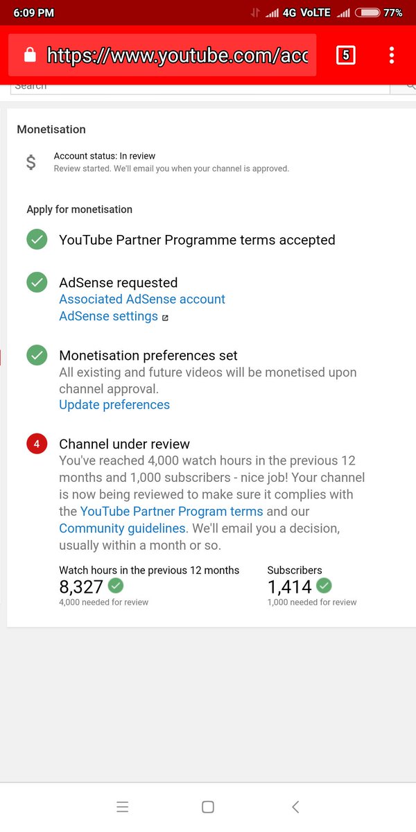 Hello @TeamYouTube My Youtube Channel is completed the 4k+ watch hours & 1k+ subscribers in previous 12 month period still my channel is under review since 24 days and my channel monetization is not enabled yet please guide me
