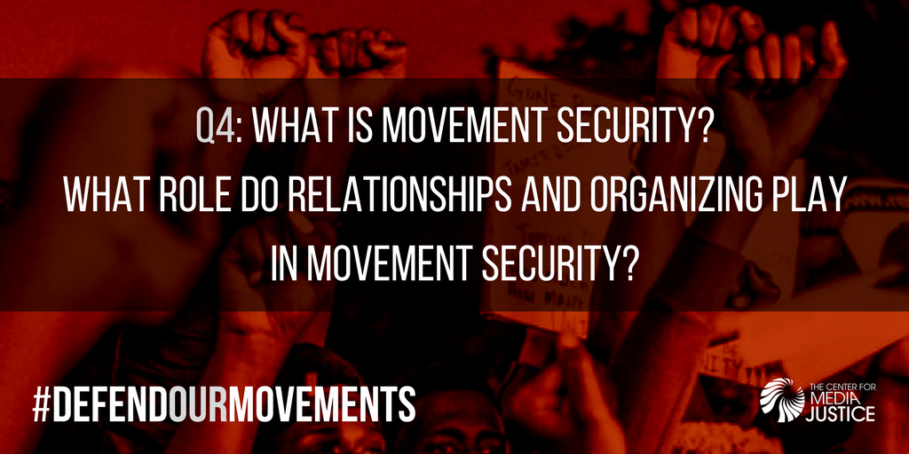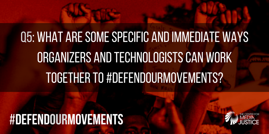A4: I want to center joy in this work too. The reality of constant surveillance & infringements on our privacy, it's hard not to feel insecure & immobile at some point but we got this. We continue to do this work because we want to live not just survive