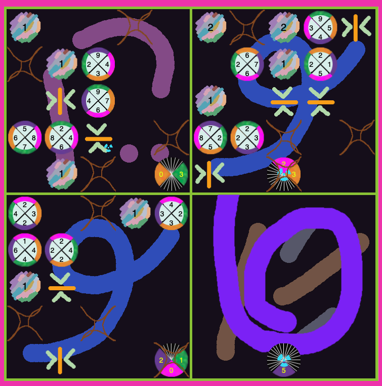 The four panes reminded me of Time Code, and it was fun to play until I got curlicue mode. Then I was stumped. I loved the noises and it made me giggle everytime.