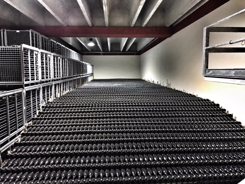 170K bottles of Franciacorta are aging in 250K sq ft cellar at La Montina winery in