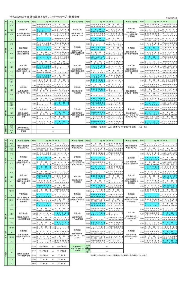 #第53回日本女子ソフトボールリーグ 組み合わせ決定! \