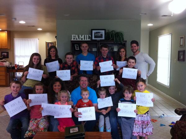 My cousins the Duggars! Fun fact: If their kids have 19 kids and so on, we'll have 2 billion Duggars in 9 generationspic.twitter.com/UPoA4Jo2m7