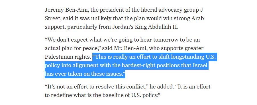 "It's a joke. Seriously? Do you really believe that it's a peace plan? [...] I fear that this plan could cause chaos in the State of Israel." - Former Likud MK Meir Sheetrit pans the absurdity and danger of Trump's