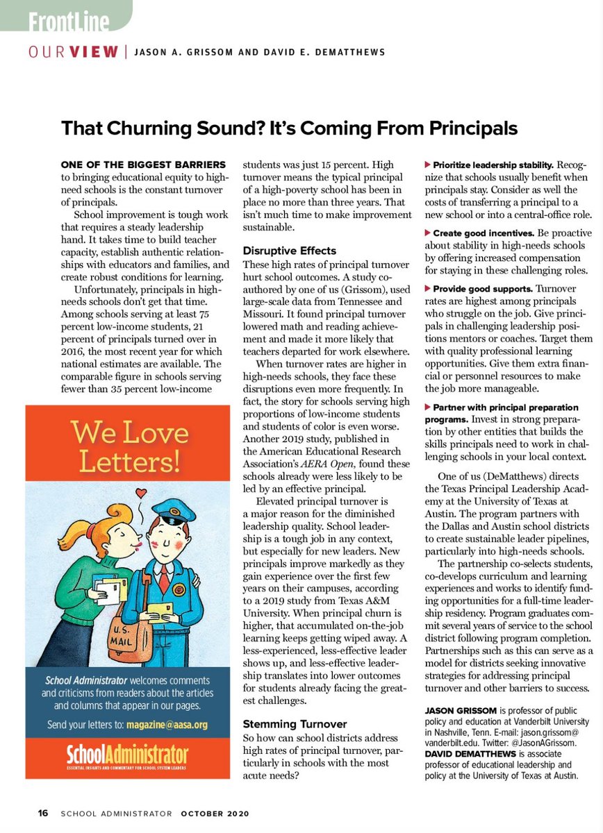 Principal turnover is an equity issue. Enjoyed working on this short piece for School Administrator with