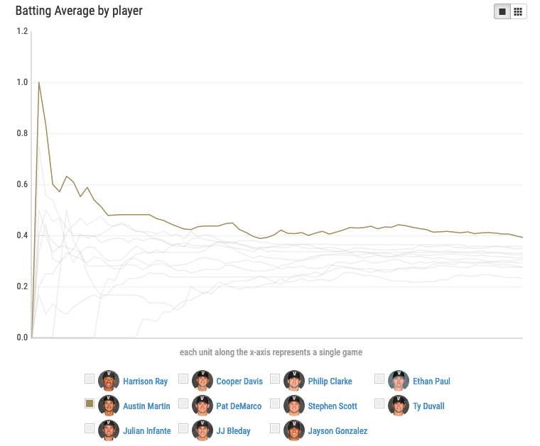 1. Despite the drop-off at the end of the season, Autin's batting average line is ridiculous. .442 on May 16!pic.twitter.com/GBmkcl0yrn