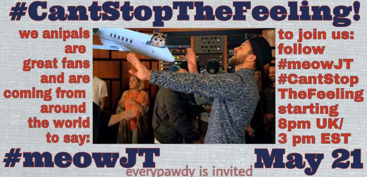 Twitter anipals #CantStopTheFeeling we must meet you #meowJT everypawdy's invited @THETNKIDSpic.twitter.com/4oy8tSLIBA
