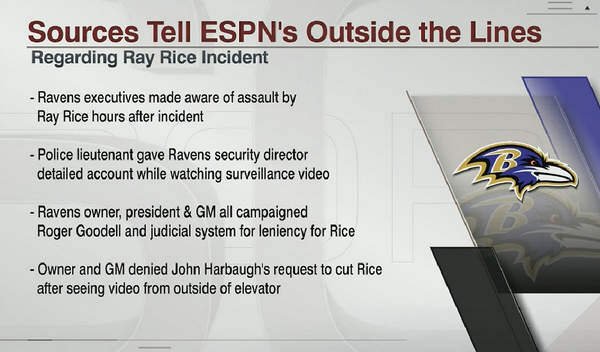 THIS JUST IN: Ravens executives received details on Ray Rice hours after incident occurred. » http://es.pn/1wOVZ3s pic.twitter.com/B74yiDO8Sp