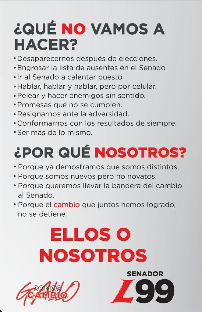 #CAMBIO y lo cumplimos. Es el momento de llevar esas transformaciones al@SenadoGovCo El 13 de marzo ese sueño será posible L99
