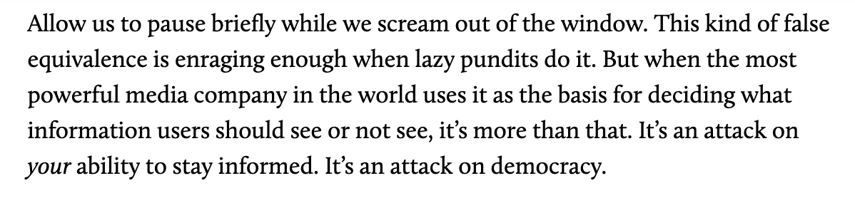 @MotherJones “The problem was that the progressive outlets were real [news] outlets like yours, and the right ones were garbage outlets. You guys were one of the outlets who got singled out to balance the ledger.” https://www.motherjones.com/media/2020/10/facebook-mother-jones/ …pic.twitter.com/mfr4LhNdZp