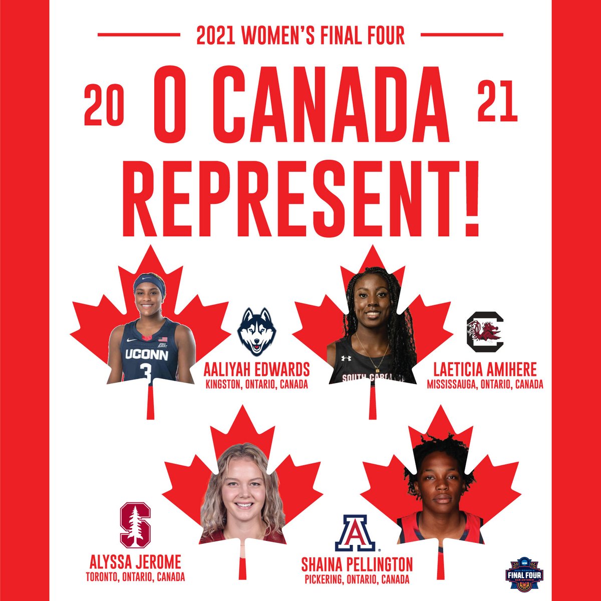 Each remaining #WFinalFour team has a player hailing from Canada