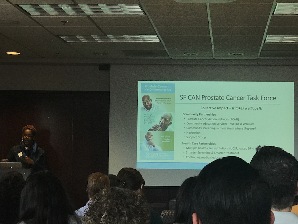 @PalmerNynikka@UCSF reports data on common frustrations/challenges of African American#ProstateCancer patients and the need to improve communications and outcomes. Gives example of the SFCAN Prostate Cancer Action Network outreach flyer http://ow.ly/NwjC50y9scA pic.twitter.com/gv3lKCTXSJ