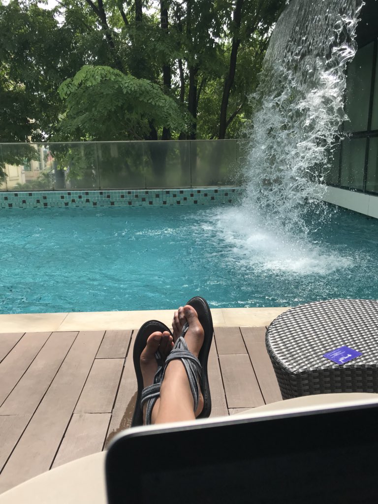 Reading @elianayjohnson’s pool notes by a pool. pic.twitter.com/WoFsFTUkxL