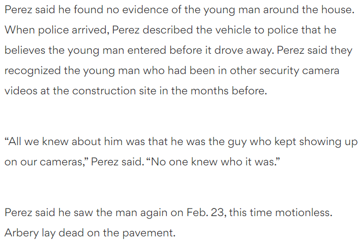 It actually says it's both Arbery and not Arbery. According to ABC, his parents said the man seen on surveillance video in the months before was not Arbery, but Perez seems to think it was:pic.twitter.com/sykgDPL32j