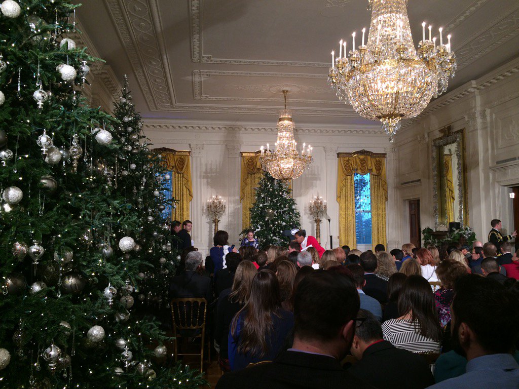 Awaiting @FLOTUS in the East Rm. Follow @thenytimes Snapchat to see my White House holiday decorations previewpic.twitter.com/RYObdcDe0w