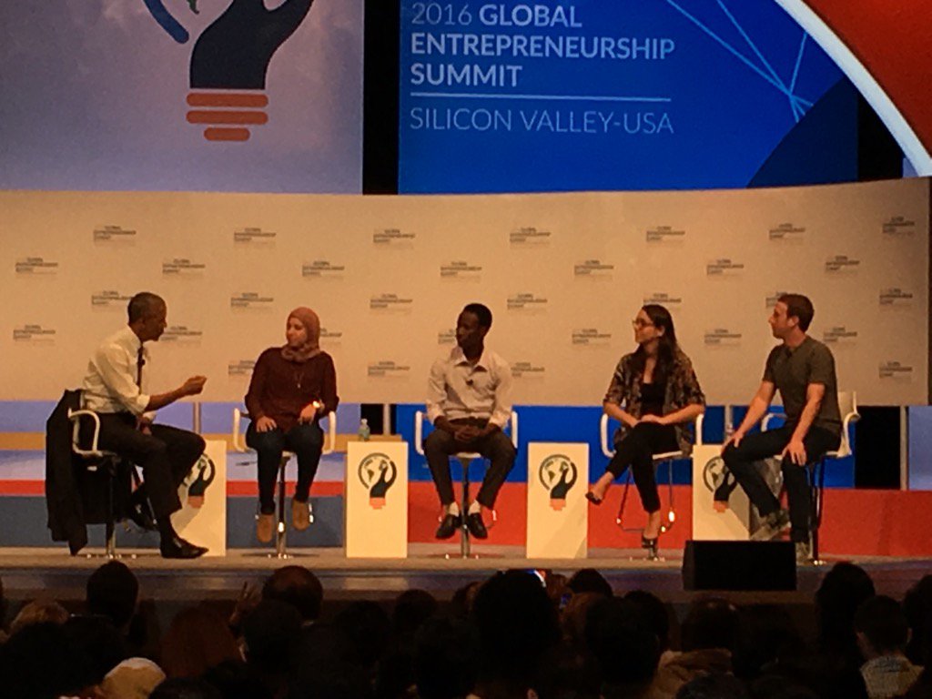 Obama on stage w Mark Zuckerberg @ges2016 laments he won't b able to get away w a t-shirt "4 at least another 6 mos"pic.twitter.com/tfWbQ9sN8E